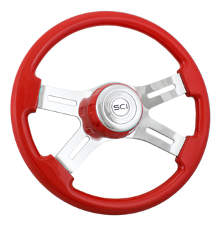 16″ Painted Wood Rim, Chrome 4-Spoke w/ Slot Cut Outs, Matching Bezel, Chrome Horn Button, 3 Hole Wheel