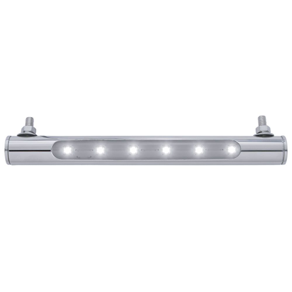 Highly polished 304 premium grade stainless steel for durability and shine. Universal application, install anywhere. Mounting studs are approximately 8″ apart. Design for any 12V system.